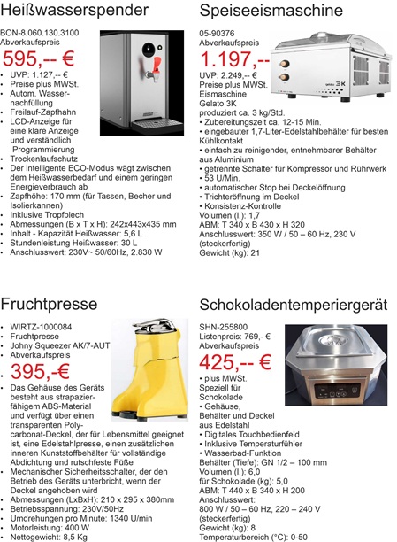 Zum Beispiel Gläserspülmaschinen COMENDA komplett mit Reiniger- und Klarspülerpumpen. Basispreis ab Euro 898,--, Geschirrspülmaschinen ab Euro 1.398,-- zuzügl. MWSt. bei Abholung oder Lieferung frei Haus und Selbst-montage.