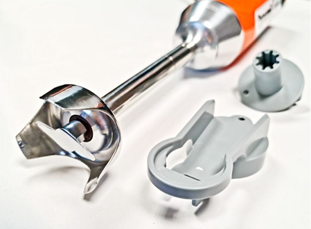 - Fester Mixstab aus Edelstahl mit Edelstahl-Klingen und Titan-Beschichtung