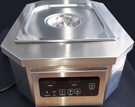 Das Gehäuse des Geräts besteht aus strapazierfähigem ABS-Material und verfügt über einen transparenten Polycarbonat-Deckel, der für Lebensmittel geeignet ist, eine Edelstahlpresse, einen zusätzlichen inneren Kunststoffbehälter für vollständige Abdichtung und rutschfeste Füße.