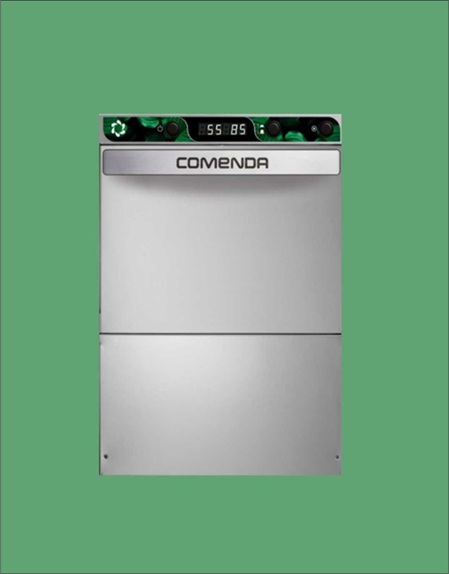 Geschirrspülmaschine COMENDA* komplett mit Reiniger- und Klarspülerpumpen. 400 Volt, umstellbar auf 230 Volt.