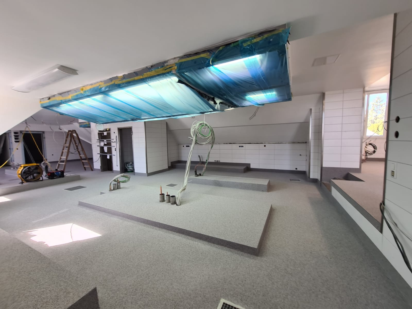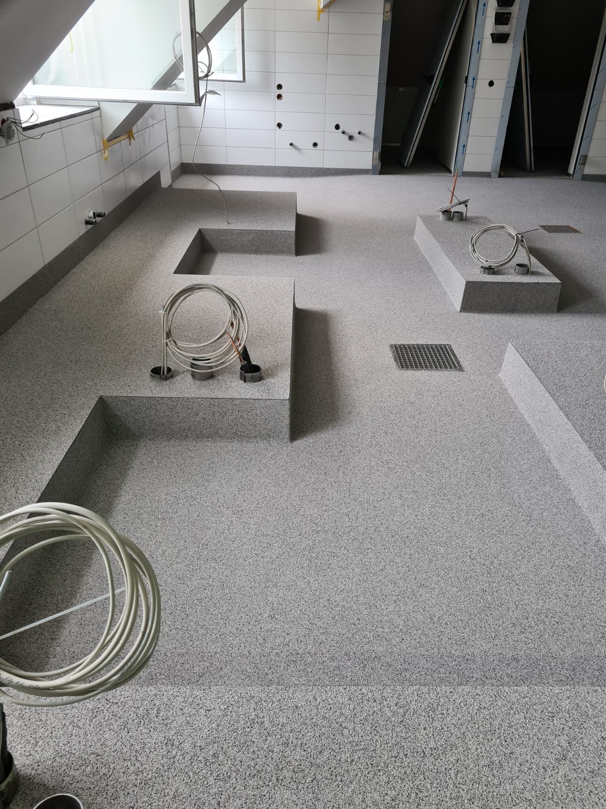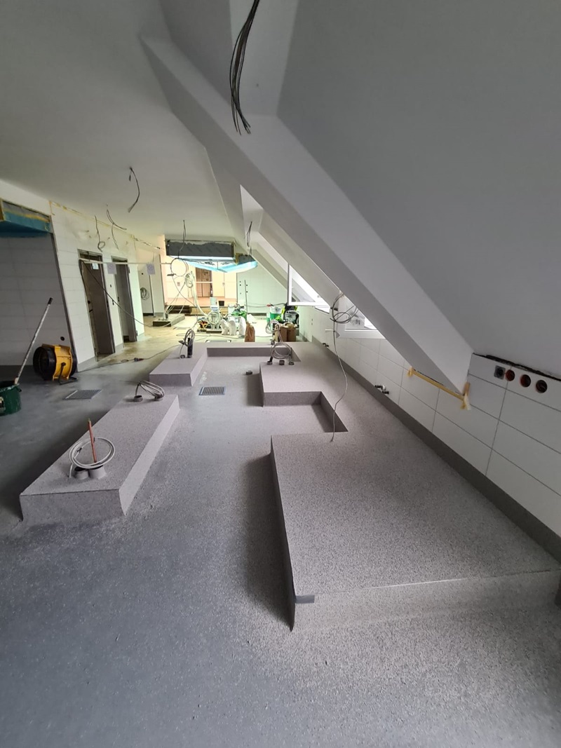 Alle Geräte werden hygienisch auf Sockel aufgestellt. Diese Sockel sowie den kompletten Fußboden hat die Fa. Geisler, Kunstharzböden, professionell ausgeführt. https://www.facebook.com/uwe.geisler.777