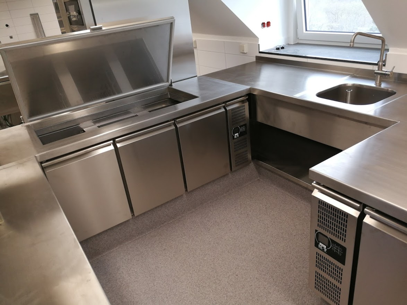 Die "Sockellösung" ist für uns immer noch die beste Ausführung, um volle Hygiene auch unter den Geräten zu gewährleisten. Dies erfordert natürlich präzise Planung und Ausführung.